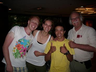 Netjes afgehaald door Ton en Mart, die hier nu twee maanden is. Als ze het vliegtuig van AirAsia zien overvliegen, stappen ze in de auto en zijn dan prima op tijd om de nieuwkomer op te pikken. Omgekeerd is het lastiger hun huis te zien. Pas als de masten op de heuvel in zicht zijn weet je dat je razendsnel naar beneden moet kijken om nog net het huis van Ton te kunnen zien. Hier alles als van ouds, ’s-avonds lekker eten op de Night Bazar en een biertje te veel. En woensdag dus same same. Lekker weer, geen regen. Moet kunnen. Ton heeft inmiddels tegen wil en dank een restaurant geopend; de termieten (rajap) zijn de mdf plinten in de (slaap)kamers met laminaat aan het oppeuzelen en dat gaat met grote snelheid en behoorlijke schade gepaard. Die beesten lusten ook alles. Deze week worden de plinten vervangen door uit Singapore overgevlogen kunststof plinten. Verder hier en daar weer mensen dag gezegd en daar biertjes op gedronken.