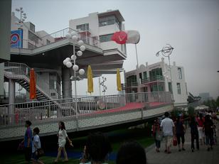 Ik vind het gezellig wandelen op het terrein en de bonte verzameling aan paviljoens verveelt niet maar echt landenpaviljoens bezoeken, daar was het deze dagen echt te druk voor. Soort Efteling of Euro Disney; een halve dag uittrekken om twee attracties te zien.