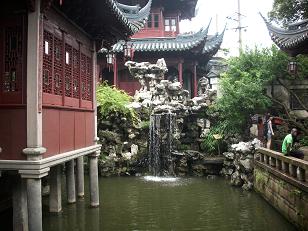 traditionele Chinese tea.Soort high tea maar dan op zijn Chinees; kwarteleitjes, onbestemde koekjes, gedroogde vruchtjes en nog wat voor ons onherkenbare lekkernijen. Na de thee in de rij voor een kaartje voor de Yu tuinen. Het zou de enige klassieke tuin in Shanghai zijn en is in 1577 is aangelegd. Wel heel bijzonder, onder een 400 jaar oude Genko te staan. Zou ook zo maar kunnen. Hier ben ik de vorige keer niet geweest. Wel heel bijzonder, Tuinen zijn hier vol, heel vol. Paviljoens, rotspartijen, waterpartijen, kleine paadjes, verrassende hoekjes, alles op een heel bijzondere en doordachte manier gerangschikt zodat het lijkt alsof je in een hele grote tuin loopt. Ook veel rustplekjes op lange houten banken rondom de paviljoens. Daar een drie kwartier zitten dromen en staren naar de goudvissen die ronddartelen bij het voer dat er voor ze wordt uitgestrooid. Op de terugweg