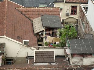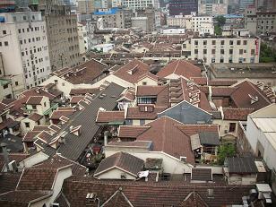Links en rechts: Uitzicht vanaf het hotel op het buurtje achter Nanjing Road. Hoelang nog?