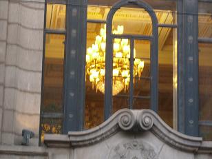 Rechts: een kroonluchter in het Metropole hotel