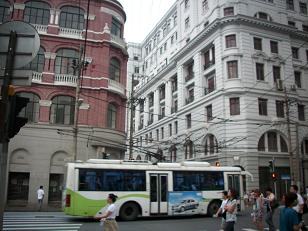Een trolleybus, op de kruising Jianxi Rd. en Hankou Rd.