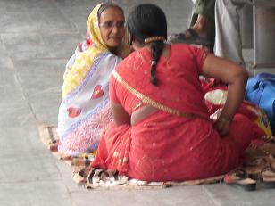 Tuktuks, die hier motor ricksha's heten, taxi's bussen, fietsen, betjaks, paard en wagen, vrachtwagens. En mensen, heel veel knippende, etende, kokende, zittende en lopende mensen. Dat is mijn erehaag op weg naar het station. Onder begeleiding van een niet aflatende stroom straatverkopers. Ik moet harder worden en minder vriendelijk afwijzen. Maar daar werk ik mijn hele leven al aan dus ik ben bang dat het niet gaat lukken. Het station is zoals ik het wil hebben. Druk, in de ogen van een Europeaan smerig, lawaaiig maar bovenal kleurrijk. Alles is anders. Op de stationsoverkapping, hoog boven de sporen liggen en lopen honden, echt waar! Overal waar je kijkt prachtige gewaden om prachtige mensen gedrapeerd. Wachten op de trein is hier een kunst; je spreid je kleedje uit en gaat daar met je reisgenoten op zitten of liggen. Eten en drinken dicht bij de hand. En waar maakt niet uit, in de hal, voor de hal, op het perron.