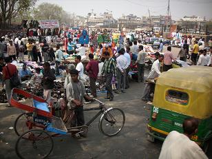 Het bezoek aan Haskoning, een NL ingenieursbureau gaat niet door. Iedereen is vrij de morgen te besteden zoals hij/zij dat wilt. Ik ga slenterend op weg naar het metro station Karol Bagh. Vandaar uit wil ik naar Old Delhi Railway Station. Dat lukt niet, dus ik kom terecht op New Delhi Railway Station. Ook leuk. De metro in Delhi is prima; goed net dat ze nog steeds aan het uitbreiden zijn. Wel vaak overvolle treinen. De treinen zijn lang en de frequentie is hoog. Maar soms zijn het zo ongelooflijk veel mensen. Het land bestaat uit tegenstellingen. Vanuit het hypermoderne metrostation beland je in de volstrekte, zinderende maar o zo verrukkelijke chaos. Stoepen ontbreken ten dele, tussendoor modder, gaten. Wat je maar bedenken kan. Geen plek voor blinden. Ik ben gezegend met kijkvermogen en dat komt ten volle tot zijn trekken.