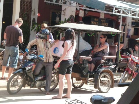 De mensen zijn wel aardig maar niet echt bescheiden. Het is business alom. Heel erg vasthoudend bovendien en alles nog plus plus. Een taxirit blijft niet bij een taxirit; er komt altijd wel wat bij. Veel verkopers, massage aanbieders. Ik voel mij af en toe net zo'n wandelende portemonnee als in in India. De tuktuks verschillen wel van die in Thailand en India; hier gewoon een (te) zware aanhanger op een gewone (Honda) bromfiets. Er kunnen vier of meer passagiers in en het dingt heeft geen eigen remmen.