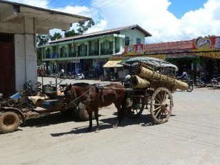 Achteloos fietsen is er niet bij want wat voor de bebouwing geldt, geldt ook voor het wegdek; soms om de gaten heenfietsen. Omdat het hier ongeveer 30 jaar geleden is, zijn de auto's ook van dertig jaar en meer geleden en dat ruik je behoorlijk! Dan realiseer ik mij weer het verschul met bijvoorbeeld Bangkok, waar veel meer nieuwe auto's rijden en alle tuktuks op gas. Hier rijden overigens geen tuktuks en dat is best raar voor Zuid-Oost Azië. Water en nog wat gekocht in een supermarkt. Complete kassa maar het meisje schrijft hetgeen ik heb gekocht in een schrift, compleet met code, aantal en prijs. Dan op de rekenmachine kijken wat het totaal is; de kassa blijft onberoerd.....