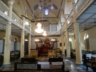 Interieur Musmeah Yeshua synagoge | | En de buitenzijde |