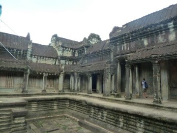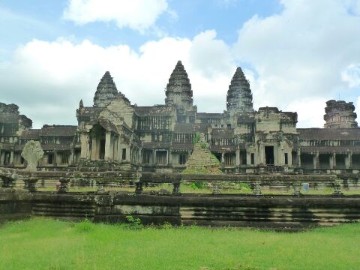 Lam, de taxichauffeur die mij van het vliegveld naar het guesthouse heeft gereden, is vandaag mijn autoslaafje. De hele dag voor $ 25. Op weg naar Ankor Wat en de andere tempels en steden. Eerst naar de meest beroemde tempel van Angkor Wat (12e eeuw). Groot en heel bijzonder. Weer anders dan die andere boeddhistische tempel, de Burubudur op Java. De Burubudur is geheel gerestaureerd; hier is dat nog in volle gang. Dat heeft ook wel wat.