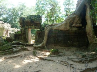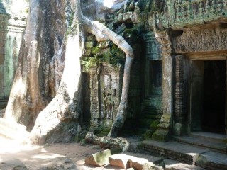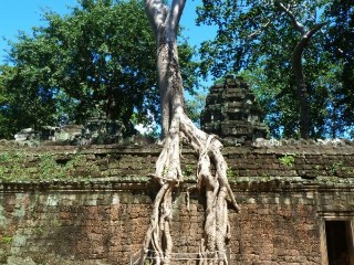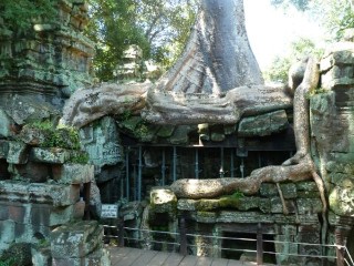 Als laatste deze dag naar Ta Prohm, de tempel van de plaatjes waar de eeuwenoude bomen een strijd op leven en dood lijken te voeren met de door mensenhanden gestapelde en geordende stene. De bomen zijn aan de winnende hand.