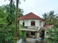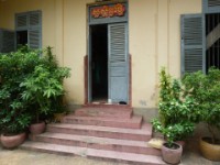 Vandaag wilde ik de boot nemen naar Phnom Pen. Maar helaas, het is regenseizoen, te weinig toeristen en omdat ze bang zijn de boot niet vol te krijgen vaart hij maar niet. Dus, de bus. Minibus, doet er maar 5 uur over. Als ik er in zit snap ik het. De chauffeur heeft er duidelijk zin in en ik dwing mijzelf om maar niet mee te rijden. Het regent de hele rit, soms wat harder, soms wat minder hard. Het land is nat, heel erg nat. Aan beide kanten van de weg staat water, soms zo ver als je kunt kijken. Het land is arm maar ook op het platteland lijken de verschillen met het welvarender Thailand niet echt groot. De tocht is leuk, langs dorpen, fietsende schoolkinderen, zwaarbeladen voertuigen van ieder denkbare soort; ook paard en wagen. Volgens de Lonely planet is de weg van Siem Reap naar Phnom Pen tegenwoordig uitstekend. Dat hebben ze gedroomd of er is nog een weg. De weg die ik heb gezien was over grote stukken redelijk maar over grote stukken slolom om kuilen en gaten. Ik heb er niet onder geleden, het busje op den duur wel denk ik. Bij aankomst het gebruikelijke ontvangst commitee van tuktuk bestuurders. Hier is het adagium , I will not take no as an answer; als je het gezegd dat je het niet wenst, is de volgende vraag Why? Maar ik red het en kom te voet en, na vele oproepingen om maar de tuktuk te nemen, aan in Le Leela Villa Hotel, een prachtige Franse villa aan de Boulevard Monivong 22. Heel toepasselijk tegenover de Franse ambassade.