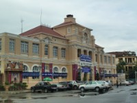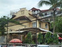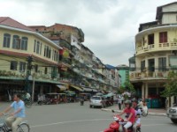 Hele opmerkelijke stad. De restaurants en bars in het uitgaanscentrum zij opmerkelijk luxe en trendy. Veel meer dan in het rijkere Thailand. Opvallend ordelijke architectuur, ritmisch, Europees (Frans?). Het verschil met Thailand is opvallend. Daar is het een gezellig architectonisch rommeltje en bouwt iedereen wat hem of haar uitkomt; omhoog, opzij eraan op erop. Maakt niet uit. Zelfs de stoep loopt hier meestal gewoon door. En ik maar denken dat Cambodja heel arm was. Zo ziet er in ieder geval niet uit. Zouden dan al die restaurants en bars van welvarende buitenlanders zijn?