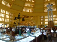 De oude markthallen, Bogyoke market, zijn vooral leuk om doorheen te lopen omdat het (voor mij) een prachtige staalconstructie is en vanwege de lange stroom kopers. Het aanbod is heel eentonig. Een hele hal schoenen, een hele hal goud en juwelen, een hele hal houtsnijwerk en soortgelijke spulletjes.