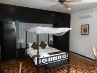 Het is niet gebruikelijk dat ik prentjes van de slaapgelegenheden opneem maar dit was zo bijzonder dat ik zelfs een prent van de kamer en het hemelbed ga toevoegen. Normaal boven budget maar vanwege "buiten" seizoen voor minder dan de helft per kamer.