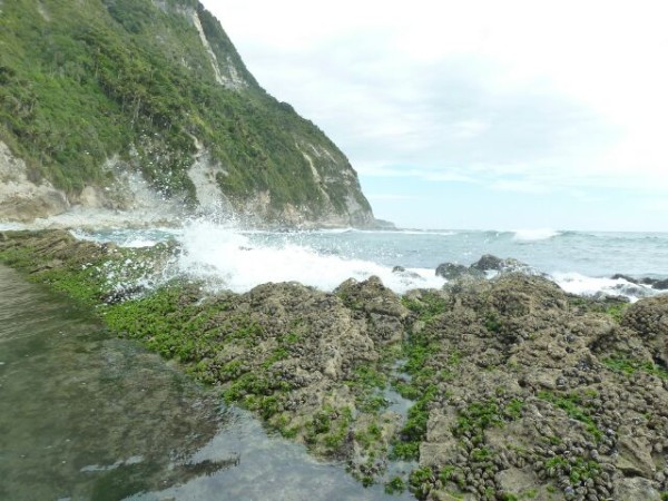 Vanmiddag is het laag tij. In Little Wangamui kun je dan naar mosselbanken lopen en daar je maaltijdje bij elkaar plukken. Wel op tijd terug want anders kom je door het hoogwater niet meer terug. We gaan met locals, Stu en Kaia en hun beide teenage zoons Tjalvi en Laban. Klauterend over de rotsen terug op weg naar het huis van Stu en Kaia. Een beetje op het nippertje want we moeten om de rots al een eindje door zee waden.