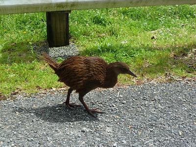 Een rustige morgen, geen haast. Eerst vervolg van Maarten van Rossem, de Big Bang, laten voorlezen. Ik heb ook een aantal luisterboeken bij mij. Koffie en omelet met Rick. Tot ziens, wanneer en waar? Om twaalf uur ga ik Laura ophalen want zij moet per sot van rekening haar auto terug rijden van Westport naar Karamea. Tussen Karamea en Westport gaat de kustweg de bergen in en dat is heel leuk. Er is nauwelijks verkeer. Bij een mega uitzichtspunt stop ik om naar beneden en in de verte te kijken. Dan stopt de rode stationcar van Kaia die haar zoon Tjalve met zijn fiets ergens heeft heeft opgehaald. Gisteravond hebben we afscheid genomen en dan plotseling, zonder afspraak, in the middle of nowhere. Uit het niets verschijnt een Weka (spreek uit Wekka). Het is een kipachtige. Rank als een kriel, lange snavel en een loopvogel. Ik zou er bijna een stukje over kunnen schrijven, zo leuk vind ik die overal opduikende en niet schuwe weka's. De weka heeft geluk want Tjalve besluit zijn nootjes met hem te delen.