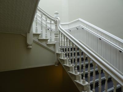 Goed geslapen, wel erg hoog bunk bed. De jongelui liggen natuurlijk weer allemaal beneden. Hoogtevrees denk ik. Het hostel is groot en mooi genoeg om er een mooi hotel van te maken; er is zelfs een lift. Kennelijk brengt het als hostel toch meer op dan als hotel. Ik heb ook wel de indruk dat er hier veel meer backpackers zijn dan in Utrecht. Ik ga nog een foto maken van de voorzijde. Het trappenhuis nodigt in ieder geval uit om de lieft niet te gebruiken.