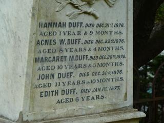 Het leven was kennelijk niet gemakkelijk, veel mensen stierven jong. Ook veel kinderen. Hannah nog geen twee, Agnes 8 jaar, Margaret 10 jaar, John 10 jaar en Edith 6 jaar.