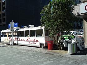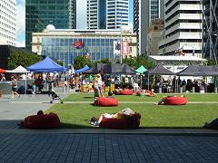 St. Kevins Arcade is een prachtige oude winkel gallerij met tweedehands winkeltjes, met een kleermaker, jonge kleding ontwerpers en cafeetjes met gezond eten. Het grootste cafe biedt aan het eind van de Arcade vol uitzicht over het park (niet omhoog kijken dus). Gezond wordt het, mijn lunch. Yoghurt, fruitsalade en muesli. Terug naar het hostel. Eten bij de Thai in een foodcourt naast het hostel. Daar is alles op een rijtje; hostel, supermarktje, 24 uur internetcafe, foodcourt, trendy cafe. 's-avonds heb ik een biertje verdiend. Terug naar Vulcan Street met de mooie pubs. Het wordt Belgian Beer Cafe The Occidental. Niet vanwege het bier maar er speelt een steengoeie rockband. Jonge gasten maar ze spelen vooral klassiek; Jimi Hendrix, Beatles, Beatles, Led Zeppelin en ..... Rolling Stones. Daarmee krijgen ze de tent op zijn dak. Niemand zit meer stil. Wie nog eens in Auckland komt, Vulcan Street; Belgian Beer Cafe. Hebben Stella Artois, Witbier en meer op de tap. Kiwi's lusten er wel pap van heb ik gezien.