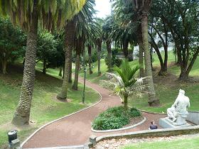 De cable-car komt uit bij de bontanische tuin van Wellington. Afgezien van de bijzondere bomen en planten is het gewoon een heel mooi park. Als ik wat te drinken en te eten neem in een theehuis wordt ik zo ongeveer aangevallen door een leger mussen. Wel vertederend: