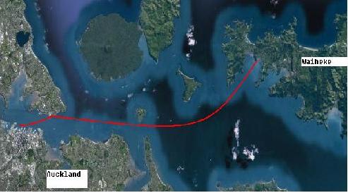 Maar de tocht er naar toe over het water is prachtig. Langs eilanden, door en langs en soms net niet over honderden zeilboten en motorboten, groot en klein, die hier de koelte op het water zoeken. Op de ingevoegde kaart kun je ook duidelijk een van de ca. 50 uitgedoofde vulkanen zien waar Auckland op gebouwd is. De laatste uitbarsting is alweer 650 jaar geleden. Maar borrelen zal het ondergronds best doen.
