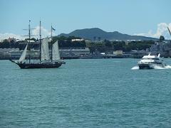 Ook grotere zeilschepen | | Het bovendek | | Auckland vanaf het water |