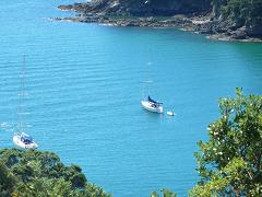 Een van de vulkanen | | Op Waiheke Island | | In de verte Auckland |