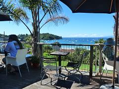 Verwendag, laatste dag in NZ. Eerst een brunch op het terras aan het water. Dan maar eens de ferry pier opgezocht. Reourtje Waiheke Island. Waiheke ligt in de baai van Auckland en is niet echt klein. Er zijn wijngaarden die zo ongeveer de duurste wijn van NZ opbrengen. Een wijnproeverij is daar niet gratis maar je moet betalen om mee te mogen doen. Malle lui.