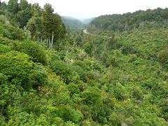 De Naked Bus van Westport naar Nelson rijdt tot Kawatri door het dal van de Buller River, Highway number 6. Tweebaans soms is er maar 1 rijstrook beschikbaar omdat de strook die uitgehakt of -gegraven is niet meer ruimte biedt dan 1 rijstrook. Soms met een stoplicht, soms gewoon met het rode en zwarte pijlen bord. Zo gaat dat ook met de meeste bruggen, ook 1 rijstrook. Het landschap is fascinerend, de snel stromende rivier, de steile oevers, het diepe groen. Niet uniek, ook Europa kent deze rivierdalen, maar daarom niet minder mooi.